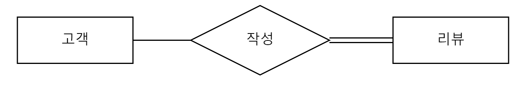 관계의 참여특성 예시: 리뷰는 '작성' 관계에서 필수적 참여에 해당한다. 작성 관계에 참여하지 않는 리뷰는 없다.